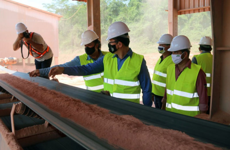 O ano de 2020 já entrou para a história da produção de calcário em Rondônia, batendo o recorde das últimas três décadas, com 160 mil toneladas distribuídas até o momento, podendo fechar o ano com 180 mil toneladas entregues, refletindo positivamente no desenvolvimento da agricultura e do agronegócio do Estado. Esta é a realidade da Usina de Calcário Félix Fleury, localizada no município de Pimenta Bueno, que foi inspecionada pelo governador Marcos Rocha, na manhã de sábado, quando cumpriu extensa agenda no Cone Sul. Segundo o diretor-presidente, Euclides Nocko, da Companhia de Mineração de Rondônia (CMR), administrada pelo Governo de Rondônia, a previsão para o ano de 2021 é de que a produção ultrapasse 300 mil toneladas, abastecendo toda a demanda do Estado com calcário de qualidade, com Poder Relativo de Neutralização Total (PRNT) o que compete com o produto produzido em outros estados do Brasil. Resultado de uma fina moagem da rocha calcária, o produto produzido na Usina Félix Fleury, tem abastecido os 52 municípios do Estado e, conforme projeção da Companhia de Mineração de Rondônia, a perspectiva é de que a jazida de calcário da Usina de Rondônia possa garantir o produto pelos próximos 200 anos.