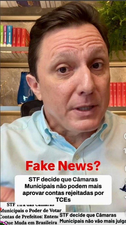 Só Fake News! O advogado Nelson Canedo, especialista em direito eleitoral, um dos seus vídeos divulgados nas redes sociais, avisa: matérias jornalísticas afirmando que o STF teria decidido que as Câmaras Municipais não têm  mais a palavra final sobre aprovação de contas das Prefeituras, quando rejeitadas pelos Tribunais de Contas, não são verdadeiras. Fake! Diz o advogado: “notícias veiculadas na mídia, nos últimos dias, afirmam que o STF teria julgado a ADI 849, que trata do assunto. Na verdade, esta decisão já foi tomada em 1999 e ficou decidido, com repercussão geral, que a palavra final sobre a rejeição ou aprovação das contas de governo dos Prefeitos, cabe exclusivamente às Câmaras Municipais”, ou seja, como o é até hoje.