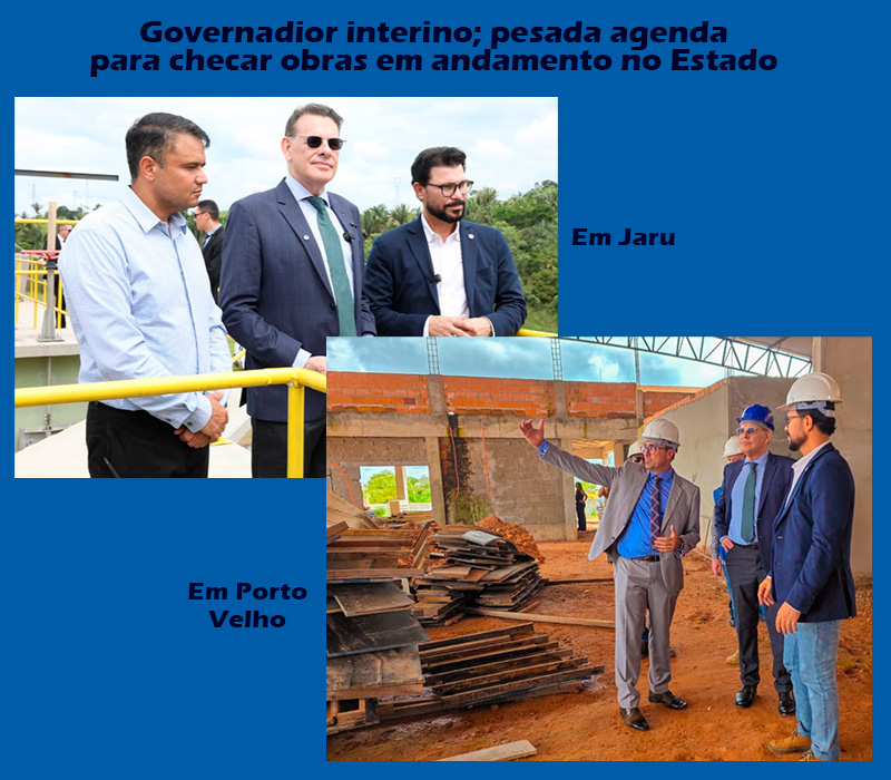 O governador interino, Alexandre Miguel, por exemplo, que fica no poder até a próxima sexta-feira, dia 24, tem cumprido agenda pesadíssima nos primeiros dias no comando de Rondônia, enquanto o governador Marcos Rocha está no exterior. Em Porto Velho, entre outras visitas, foi ver pessoalmente o ritmo das obras em dois bairros diferentes:  a Escola Integral 4 de Janeiro, no Cuniã e no Centro de Desporto e Lazer (Cedel), no bairro Jardim Santana.