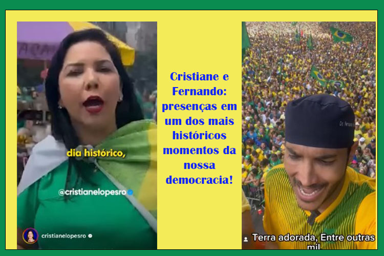Além de vários anônimos, que fizeram o sacrifício de enfrentar uma longa e cara viagem para participar do evento, a classe política também esteve por lá. Dos três senadores, dois estiveram na linha de frente: o empresário Jaime Bagattoli e o jornalista Marcos Rogério. Durante a semana anterior, ambos divulgaram meia dúzia de vídeos, nas suas redes sociais, convocando a população para a festa democrática nas ruas. Também lá estiveram (e divulgaram vídeos) a deputada federal Cristiane Lopes e o deputado Fernando Máximo. Cristiane falou direto da manifestação, na Paulista, fazendo Lives e depois fez um depoimento, empolgada com o resultado da festa na avenida. Fernando Máximo divulgou vídeo cantando o Hino Nacional a plenos pulmões, no meio da multidão. Tanto Bagattoli quanto Marcos Rogério comemoraram o que ambos consideram como um evento que reuniu bem mais de 1 milhão de pessoas, em apoio ao ex-Presidente e à plena democracia do Brasil.
