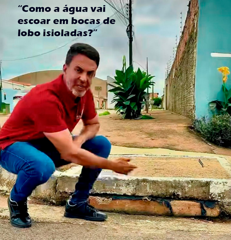 Percorrendo pontos da cidade, o Prefeito mostra no vídeo vários locais onde obras feitas para implantar o meio fio nas calçadas, o que simplesmente isolou as bocas de lobo. Ele questiona: “como a água vai ecoar por aqui”? Ele explicou que, sem ter como escoar, a água da chuva torrencial desce pelas ruas e alaga tudo, nas regiões onde o problema foi detectado.
